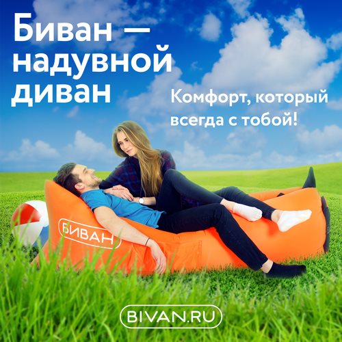 Всем привет! Житель я безусловно городской, следственно хочу, чтобы и на природе мне было удобно. Следственно мы начали подготавливаться заблаговременно и купили модель 2.0 фиолетового цвета на официальном сайте интернет-магазина Биван. Модно, стильно и, оказалось, что даже комфортно! В моей семье он понравился всем, начиная от 2-х летнего ребенка до бабушки. На эти чудо-диваны весьма немного отзывов, что для меня необычно, чай вещь прикольная, прекрасная и, основное, нужная! Цена 2691 руб. на официальном сайте интернет-магазина Bivan. Изготавливаются в России и это прямо греет мне душу, я же люблю все русское. Ну а сейчас поподробнее о моем Биване 2.0. Прибыл он ко мне в маленький сумке, которую можно вешать на плечо . В ней же он хранится и переносится. Колышка в комплекте не было, но есть 2 петельки для него. Дабы наш ветром не унесло, необходимо закрепить его колышками. Вес всего 1,5 кг, а надувается он стремительно, следственно тут нужно быть осмотрительными. Выбирайте - либо колышки, либо придавливаете его сами. Материал: крепкий износостойкий текстиль со особой пропиткой. Надутый диван имеет следующие размеры: 190x90x65 см. Т.е. можно даже с комфортом поспать, что не раз делал мой супруг. Да и дочь, наигравшись, некогда спокойно уснула. А как его надуть? Да проще не бывает. Насоса не необходимо. Просто несколько взмахов и готово! В квартирных условиях это сделать сложно, но допустимо. Придется помахать раз 5-6. У меня дома не получается, надувает супруг. Но один раз из любопытства испробовали надуть в загородных условиях. Вот там значительно легче! По бокам вы можете нащупать 2 кармана - крупный и небольшой. В крупный легко помещаются книжки и журналы, а в небольшой шоколадки либо вода. Я люблю на нем лежать, когда болит спина, он просто становится спасением! Мягкий, расслабляющий, очень изумительный.
